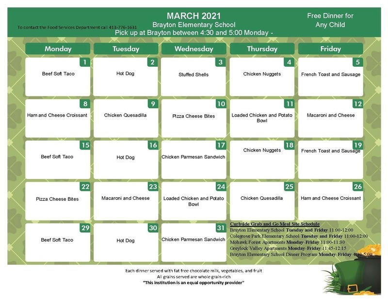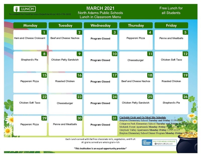March 2021 Menus